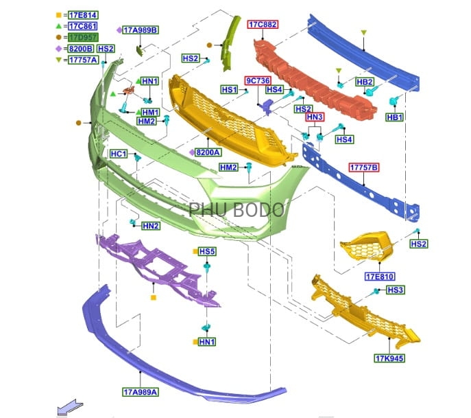 Producent Ford OryginałWspornik prawy zderzaka przedniego Ford Mustang 2024- / PR3B-17D958-AA / PR3Z-17C947-A / 17C861