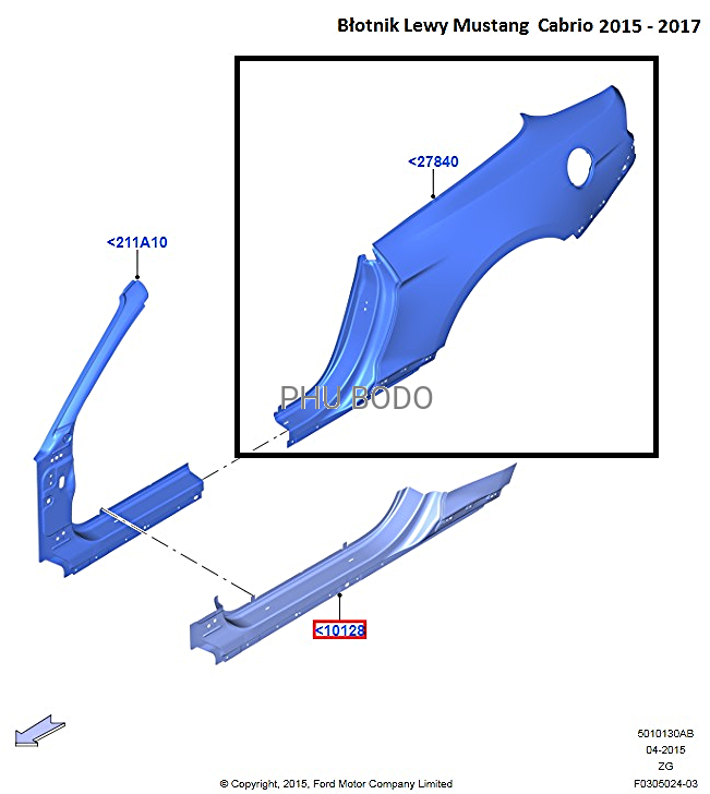 Błotnik tylny lewy Ford Mustang 2015-2023 Cabrio / FR3B-7627841-AU / FR3Z-7627841-A
