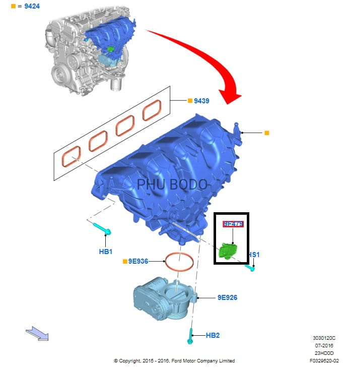 Czujnik ciśnienia kolektora ssącego 2.3 T / 1.0 / 1.5 / 1.6 / 2.0 Ford Mustang EcoBoost / Focus RS / 1852633 / EL8A-9F479-AA / BV61-9F479-AA / BV61-9F479-A1A / FL8A-9F479-A1A / EL8A-9F479-CA / W507162-S450B