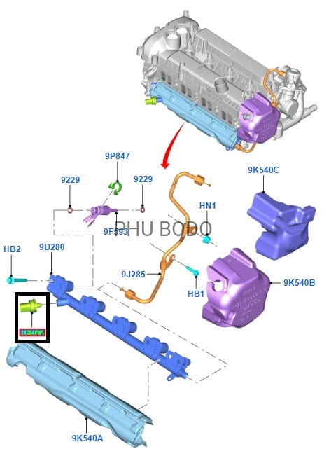 Czujnik ciśnienia paliwa na listwie Ford Mustang 2015-2023 / 2.3 EcoBoost / EJ7E-9F972-AA / EJ7E9F972AA / 5255376 / EJ7Z-9F972-A