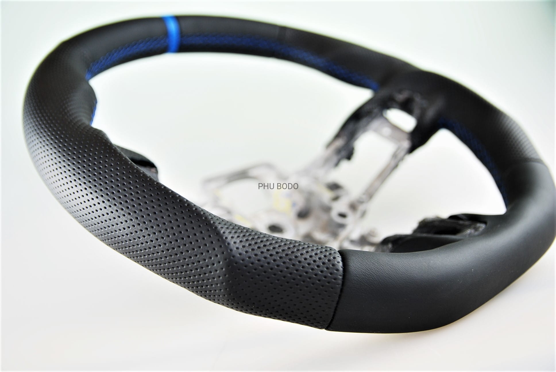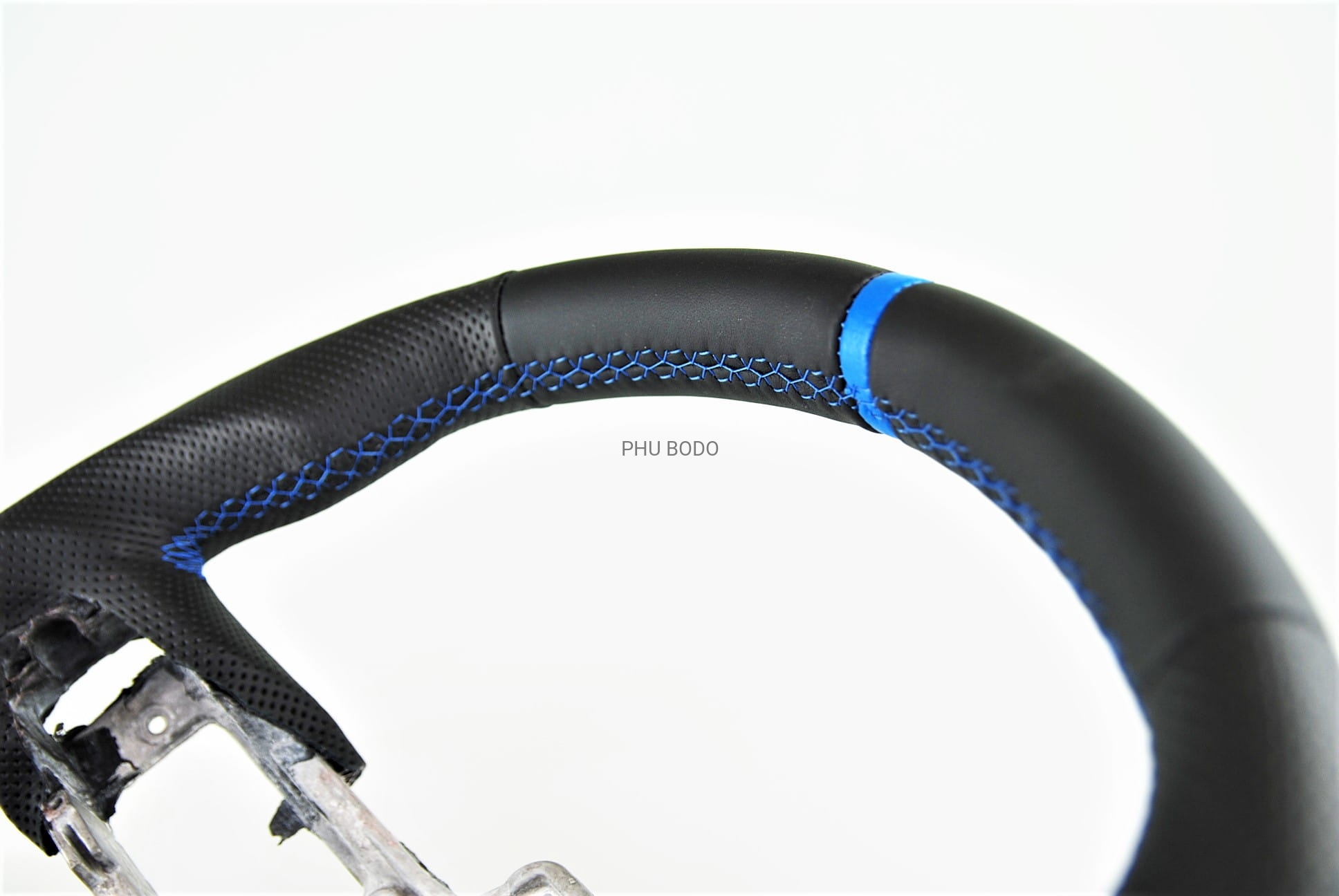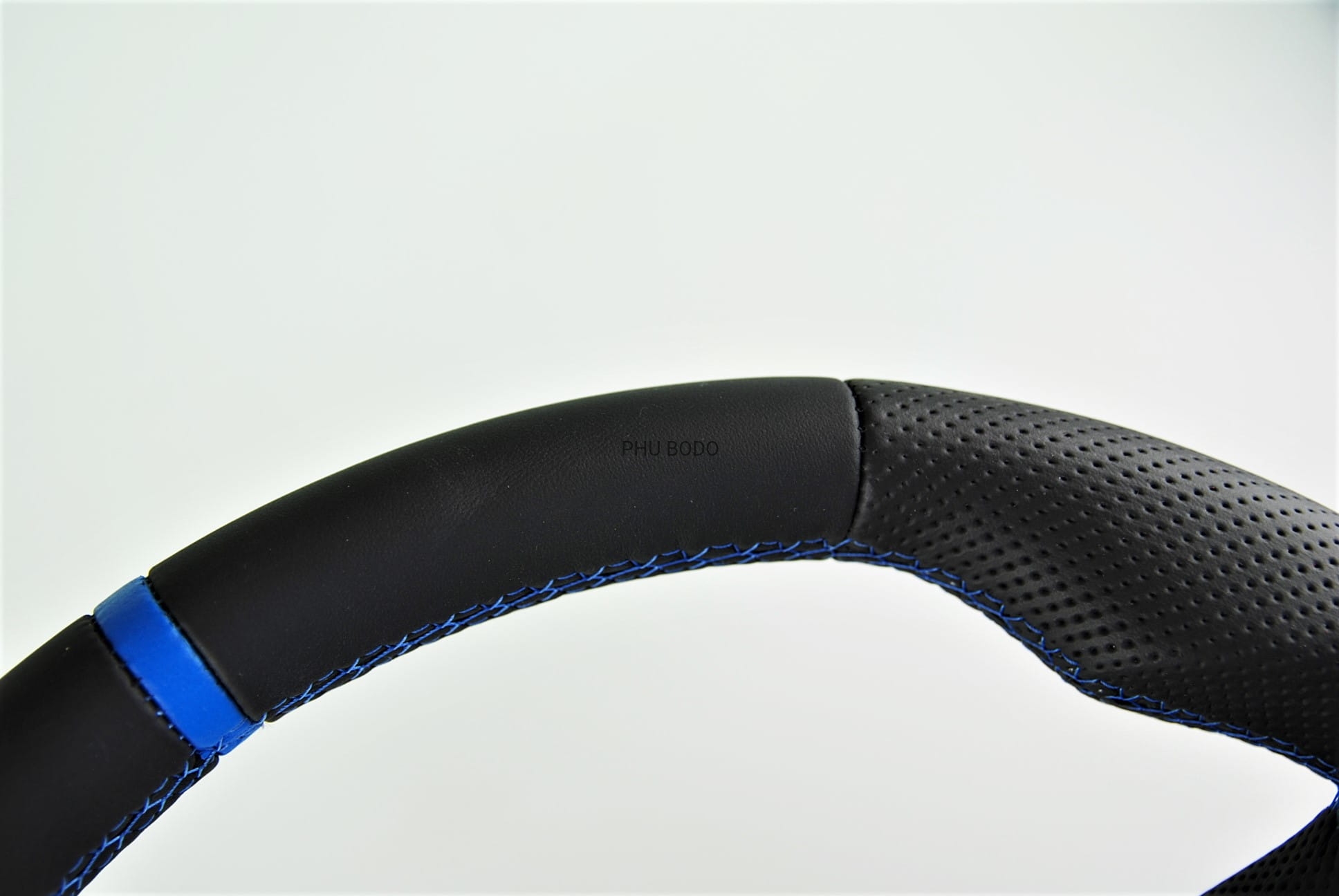 - niebieski pasek ze skóry na górnej części kierownicy