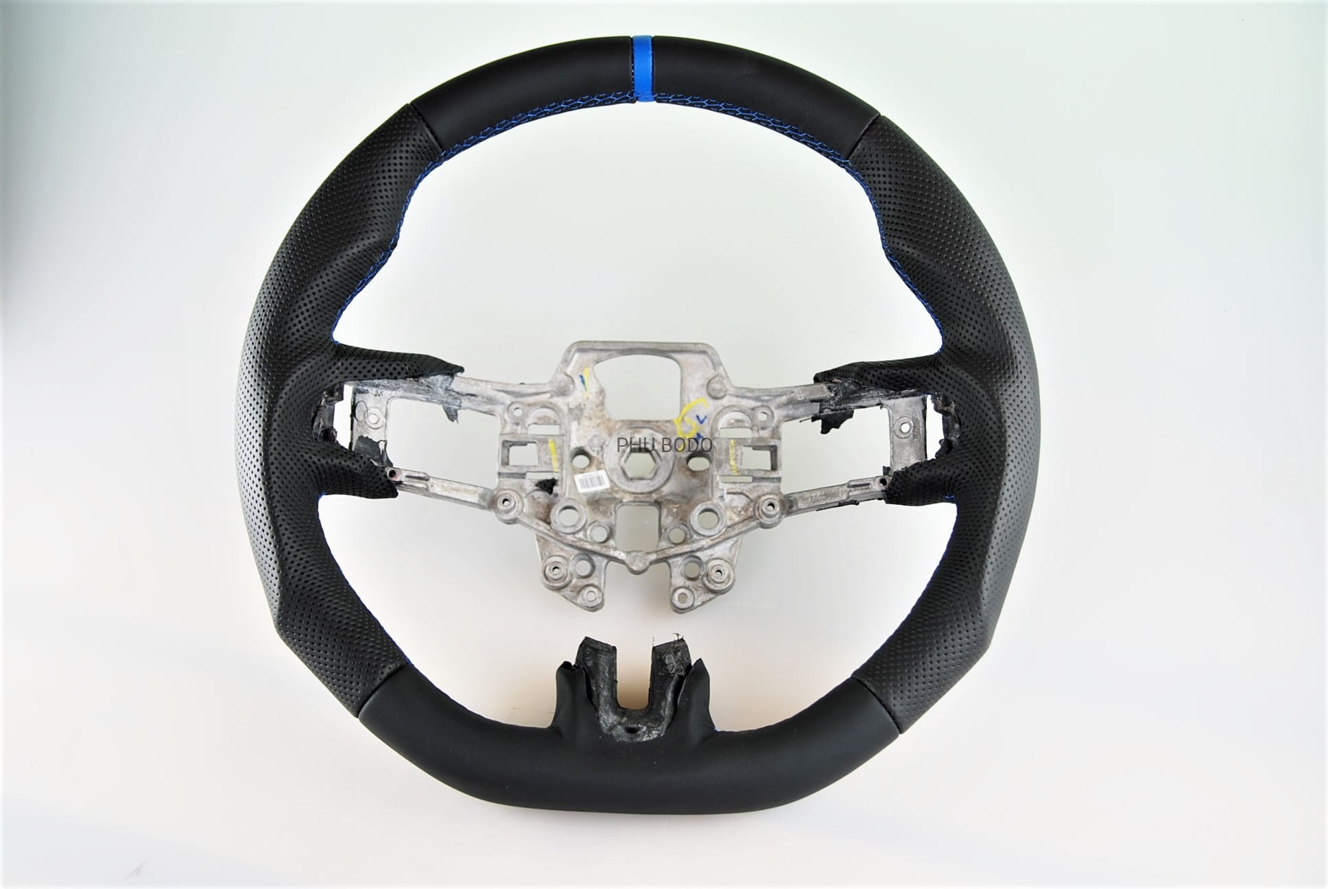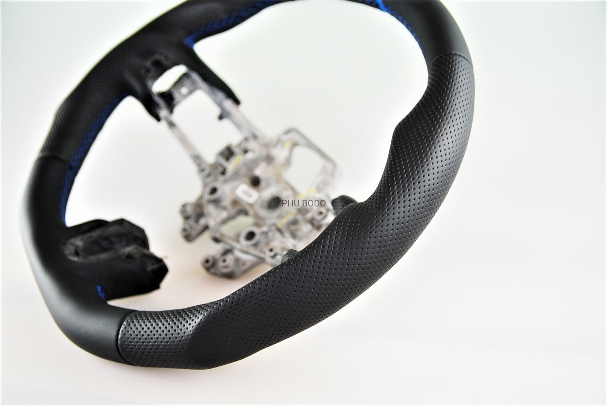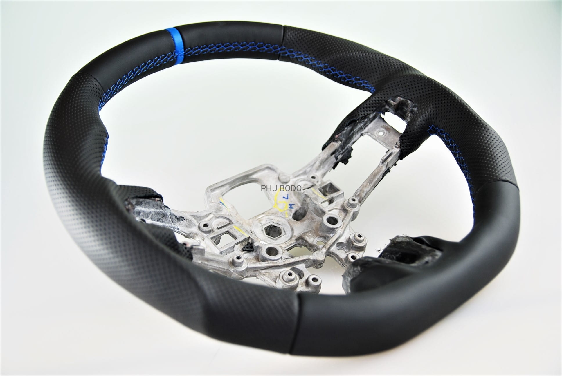 - niebieski pasek ze skóry na górnej części kierownicy