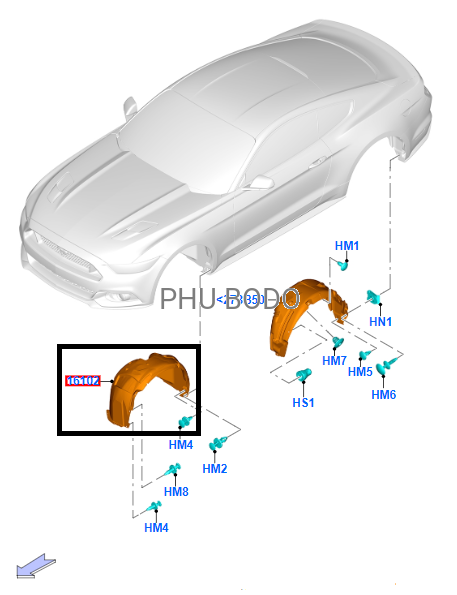 Nadkole przednie lewe Ford Mustang 2015-2017 z wygłuszeniem / 5360514 / FR3B-16A563-CC / FR3B-16A563-AE / FR3B-16A563-BE / FR3Z-16103-A
