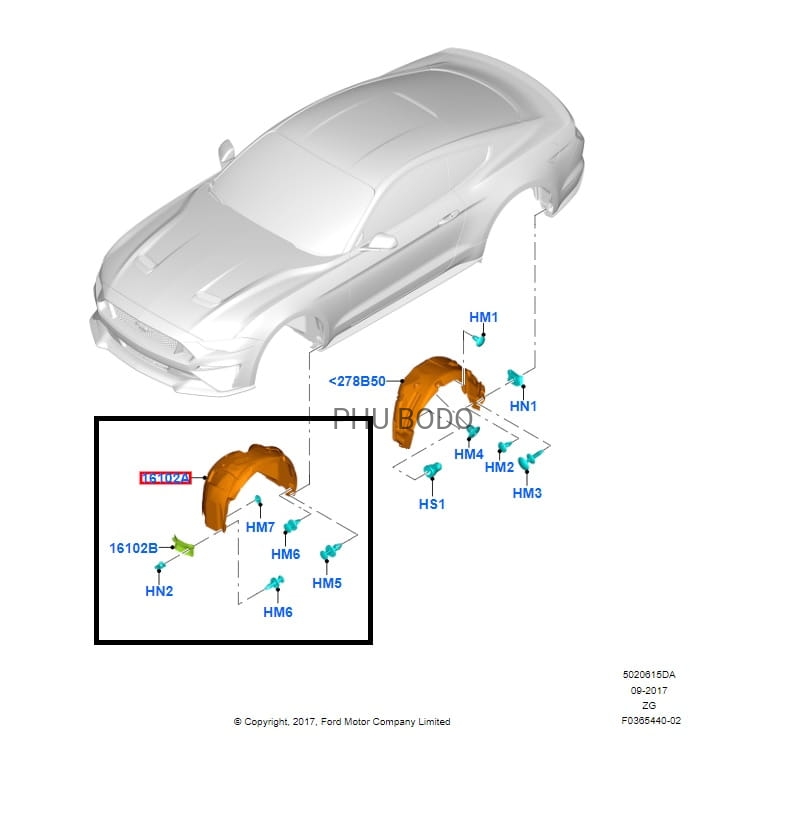 Nadkole przednie prawe Ford Mustang 2018-2023 / JR3B-16A562-AD / JR3Z16102A