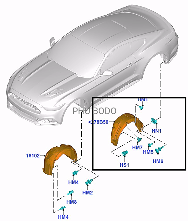 Nadkole tylne lewe Ford Mustang 2015-2023 / 2283945 / FR3B-63278B51-AH / FR3Z-63278B51-A