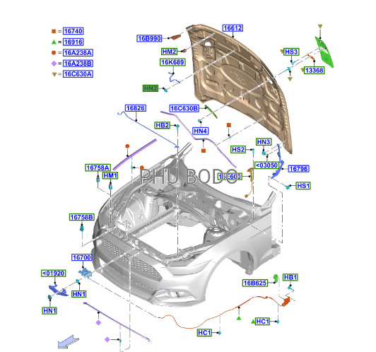 Nakrętka z podkładką rygla maski Ford Mustang 2015-2023 / 4639341 /