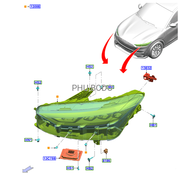Numery Ford : LJ8B-13008-AE,( AA do AF),LJ8Z-13008-A,