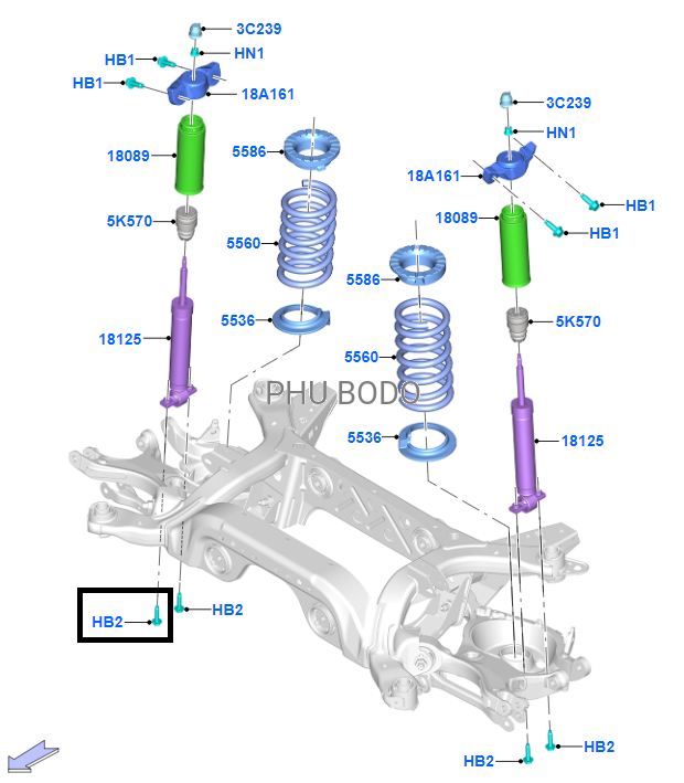Śruba amortyzatora tył Ford Mustang 2015-2023 / 2032637 / W718772-S439, HB2