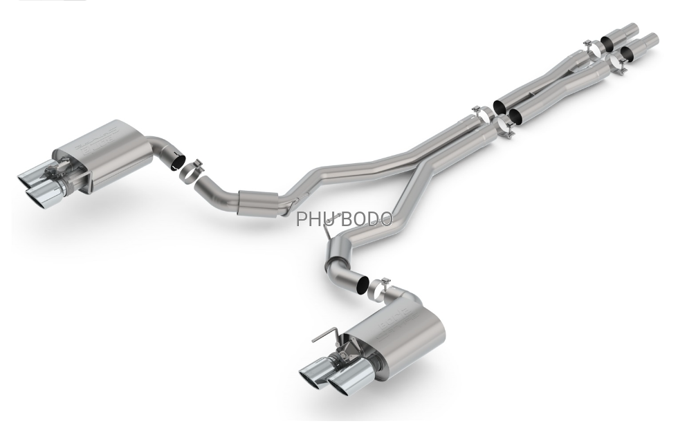 Tłumik z czterema chromowanymi końcówkami 4 cale i regulowanymi przepustnicami oraz x-pipe.Można zastosować do Ford Mustang 2015 - 2017 należy wymienić dyfuzor .