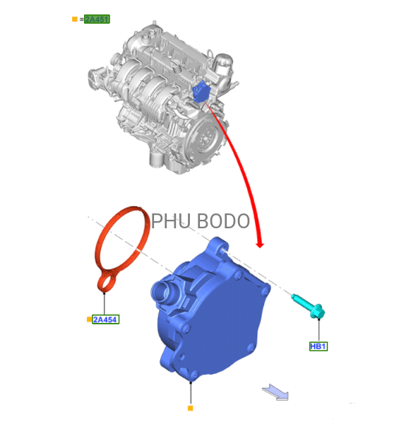Uszczelka pompy podciśnienia Ford Mustang 2015-2023 / 2.3 EcoBoost / BB5E-2D224-BB / BB5Z-2A572-BFC / 5205980