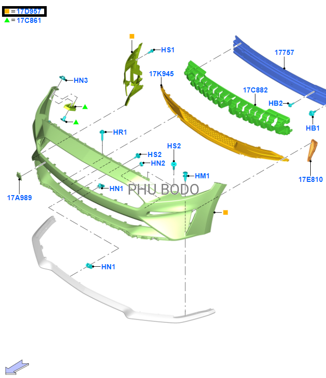 Producent OE FORD (oryginał)Ślizg zderzaka przedniego lewe Ford Mustang 2018 - 2023 / 2226002 / JR3B-17D959-AD / JR3B-17D959-AB / JR3B-17D959-AC