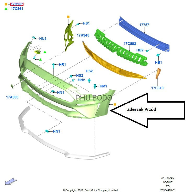 Producent OE FORD (oryginał)Ślizg zderzaka przedniego lewe Ford Mustang 2018 - 2023 / 2226002 / JR3B-17D959-AD / JR3B-17D959-AB / JR3B-17D959-AC